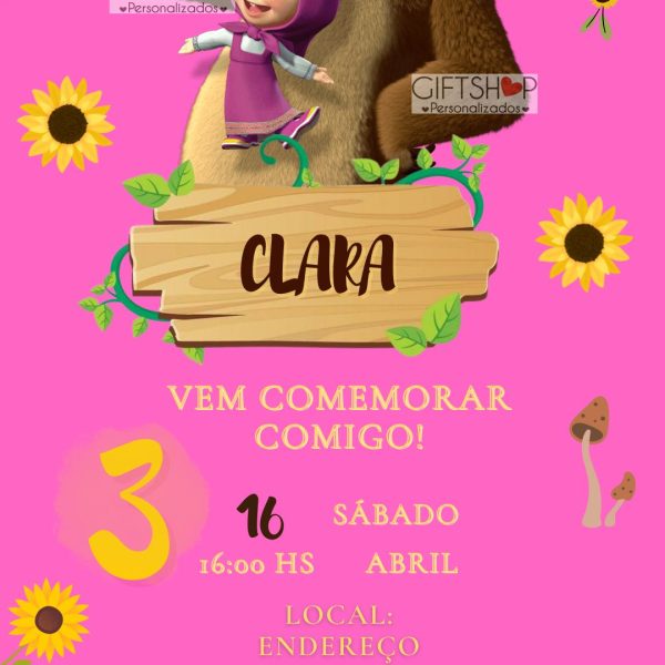 Convite “Masha e o Urso”