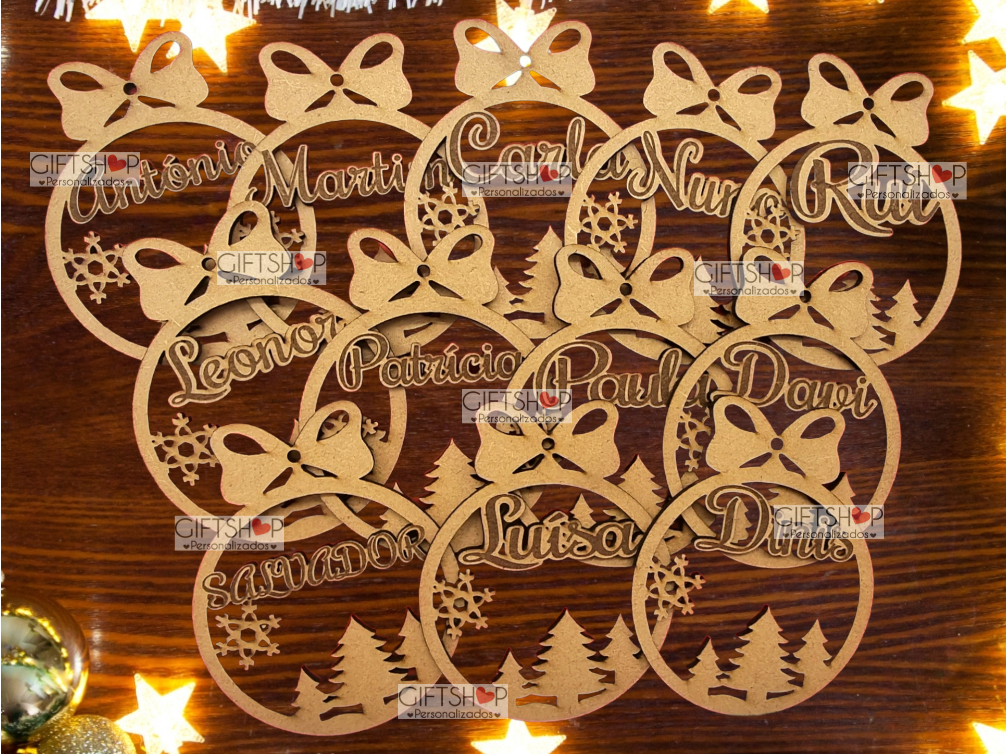 Bola Natal em Madeira Cru C/Nome