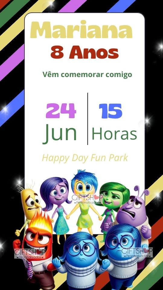 🎨 Personalizado com o tema da festa e os detalhes que quiser (nome, idade, data e morada).
