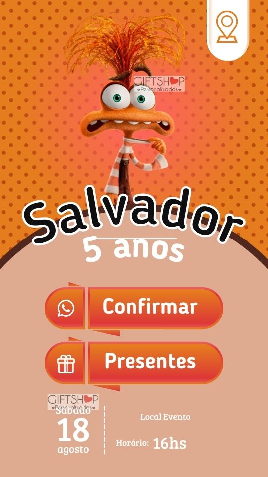 🎨 Personalizado com o tema da festa e os detalhes que quiser (nome, idade, data e morada).