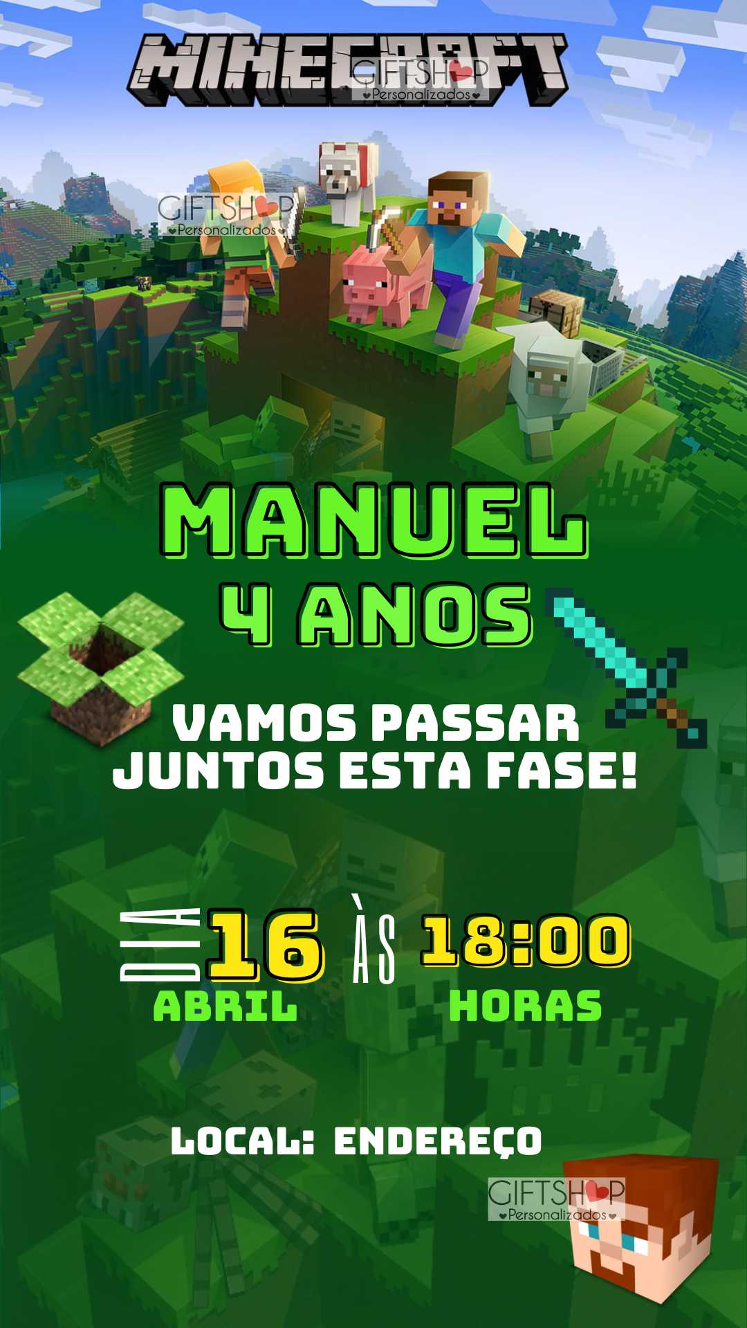 🎨 Personalizado com o tema da festa e os detalhes que quiser (nome, idade, data e morada).