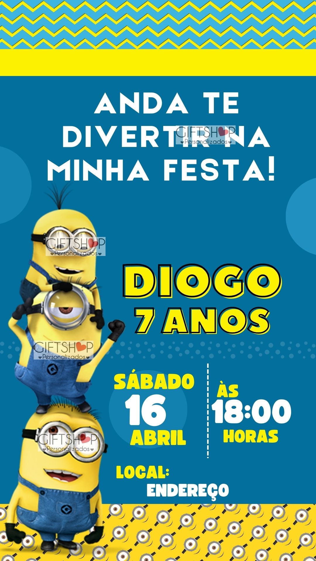 🎨 Personalizado com o tema da festa e os detalhes que quiser (nome, idade, data e morada).